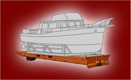 The Rubber Tyre Bogie concept was originally developed for below deck ro-ro service of railcar shells shipped without bogies attached and equipped with air brakes. Each railcar shell which can be custom built requires two Rubber Tyre Bogies. The customised bolsters act as the coupling that connects the railcar shell to the Rubber Tyre Bogies. The railcar shell is lifted only Twice - onto the Rubber Tyre Bogies when loading and off again when discharging the cargo. A terminal tractor tows the Rubber Tyre Bogies with the railcar shell on board.