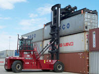 На контейнерном терминале порта используются следующие подъёмно-транспортные механизмы: - причальные контейнеро-перегружатели (пачеки) на рельсовом ходу, которые осуществляют погрузку - выгрузку контейнеров на/с судов - тыловые контейнеро-перегружатели на решльсовом ходу, которые осуществляют складирование контейнеров - стакеры, вилочные погрузчики на пневматическом ходу, используемые для складских грузовых операций - тягачи, ролл-трейлеры и полуприцепы, используемые для перемещения контейнеров и грузов.